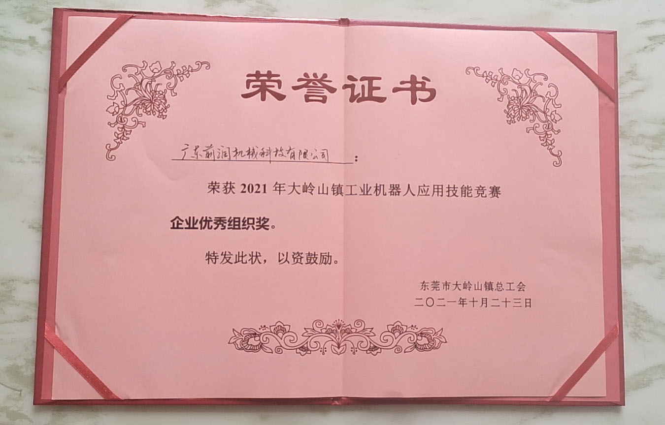 ▍ 廣東前潤機械科技有限公司優(yōu)秀企業(yè)優(yōu)秀組織獎