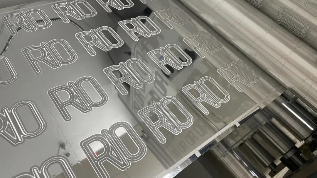 預先制作好的鐳射效果,再進行定位套印。標簽表面的逆向光油處理,與浮雕效果的字母形成了啞與亮的對比,也讓產品在貨架上有更好的吸睛作用。
