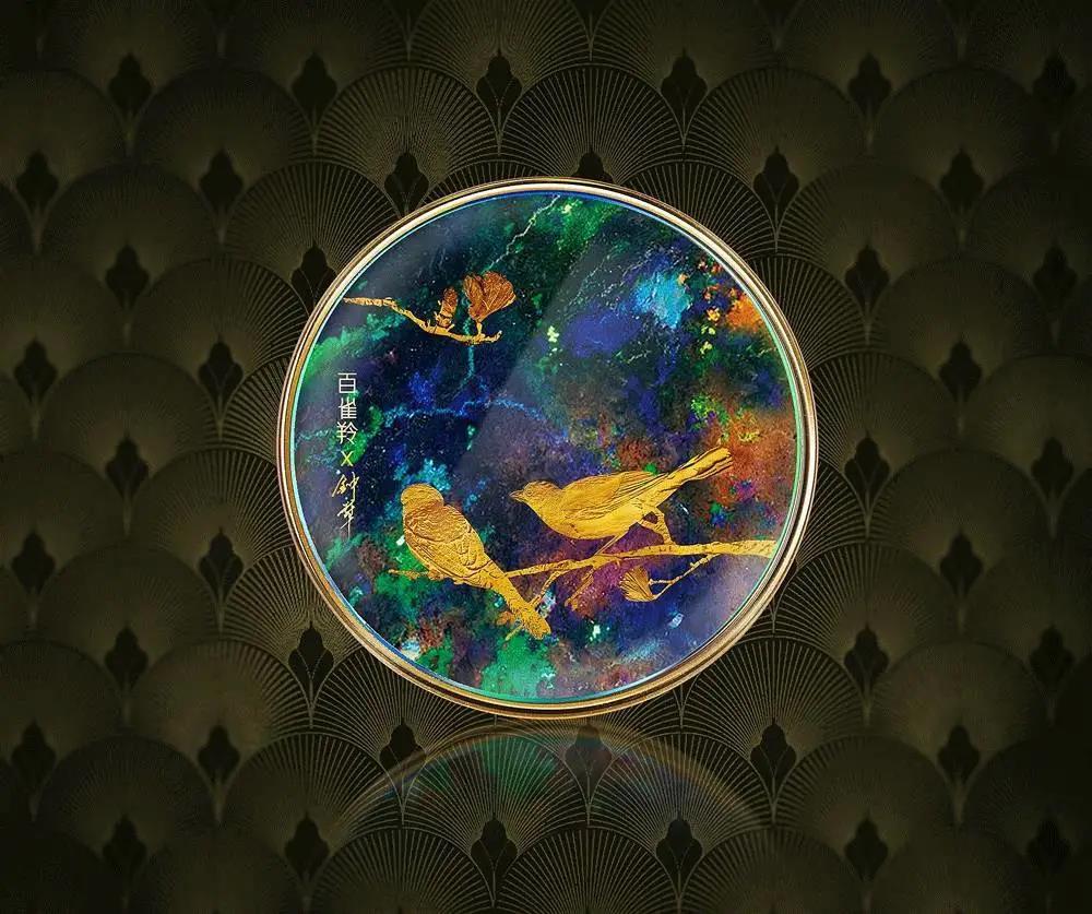 完美日記的粉盒包裝,模擬出金屬質感的羽毛。