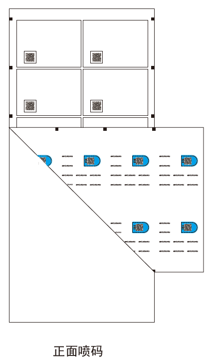 面層的背面噴印關聯變碼組合,然后,在正面噴印關聯碼,自動復合,聯線完成,自動翻轉前后校對